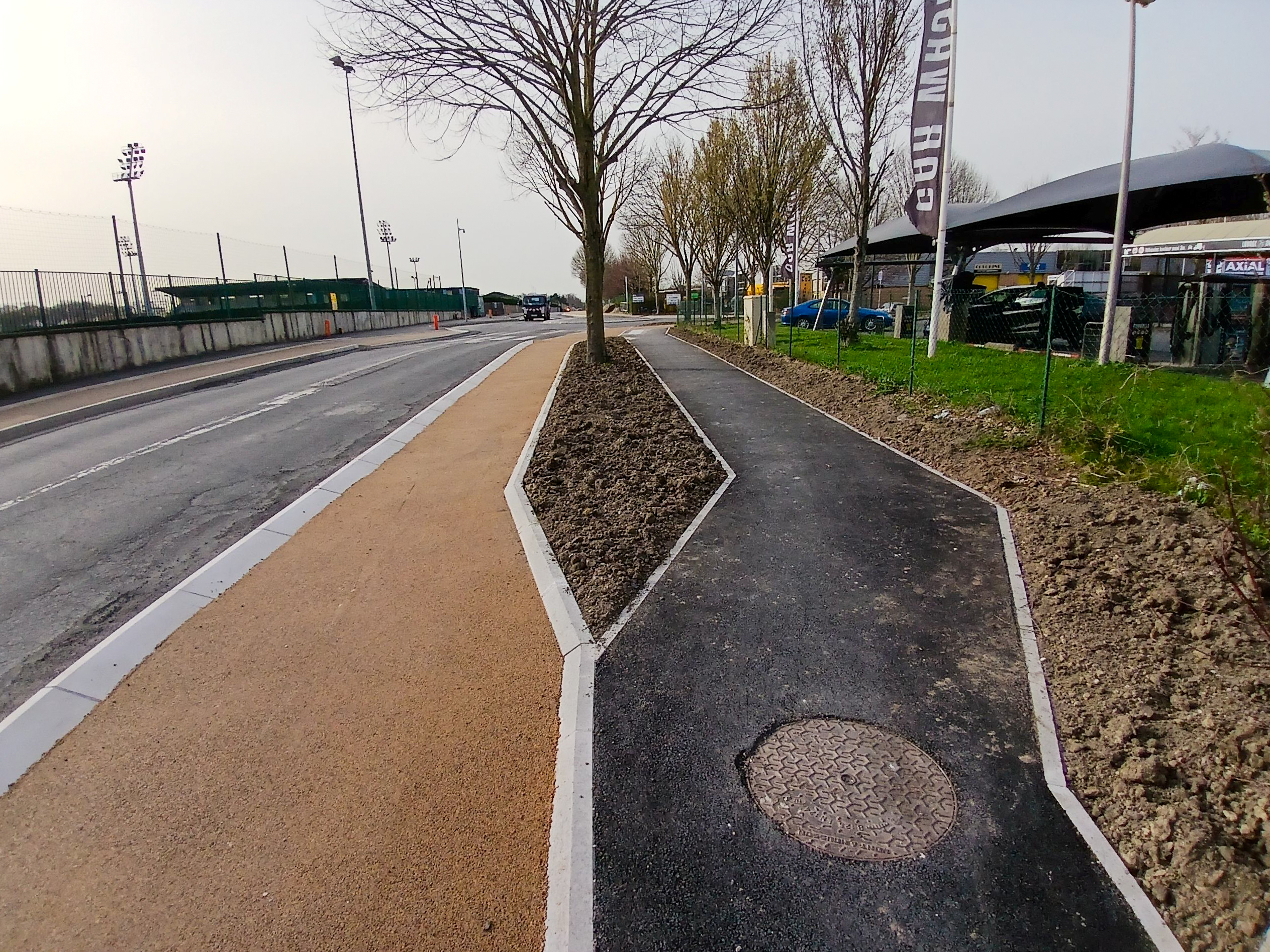 - Réalisation de l’enrobé du trottoir et des entrées charretières
